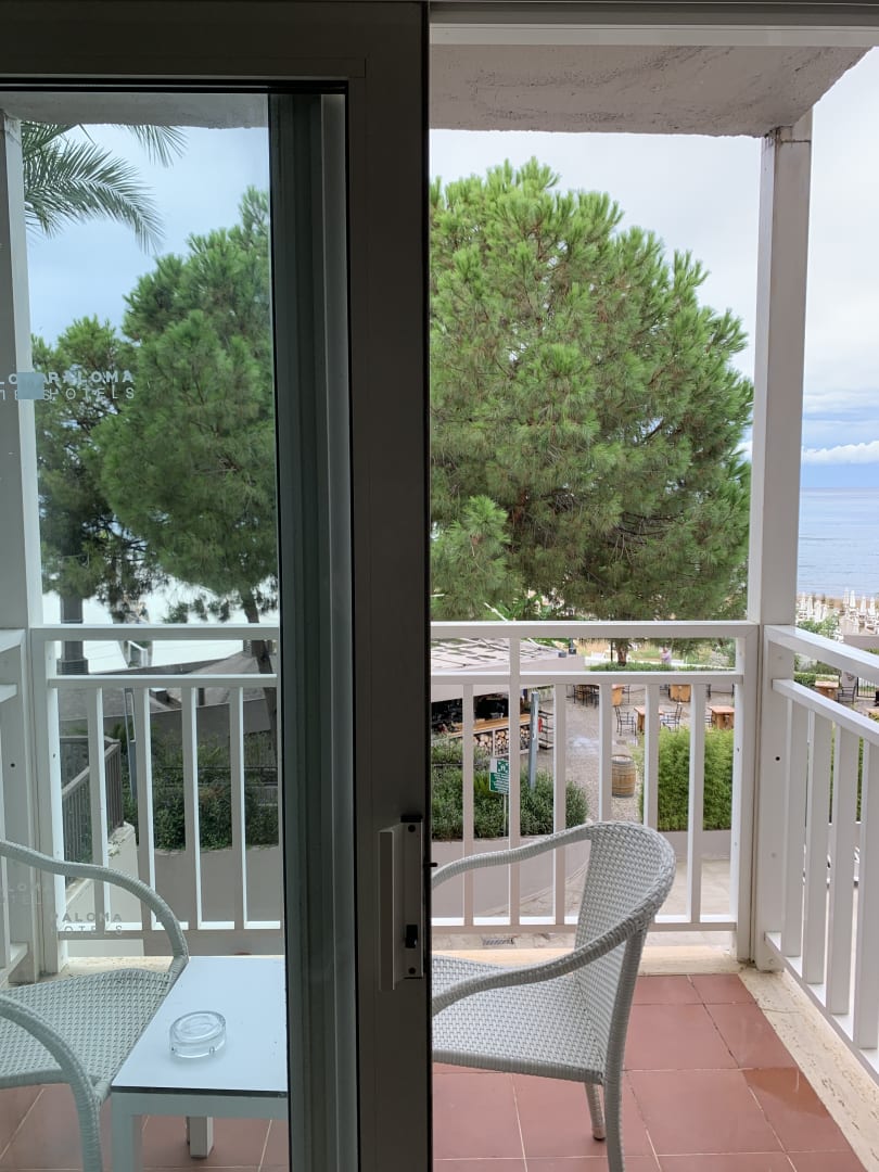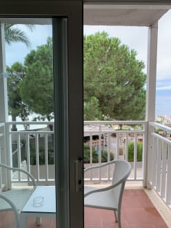 Zimmer mit direkten Meerblick, leider kaum Meer zu sehen