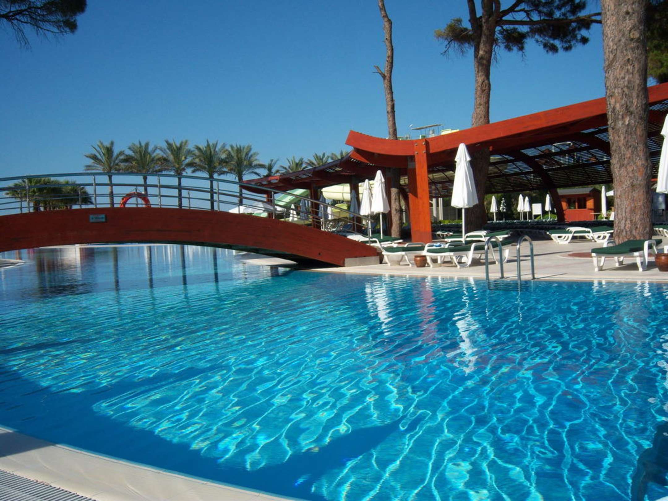 Relaxen in poolZelfs bij een vol hotel nog rust in de pool aangezien glijbanen een apparte pool hebben