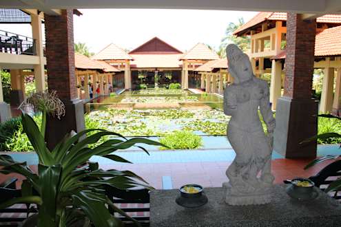 Blick von der Lobby in das Hotelgelände.