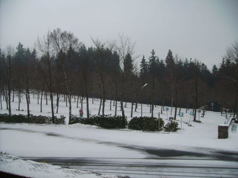Aussicht vom Balkon auf den Parkplatz