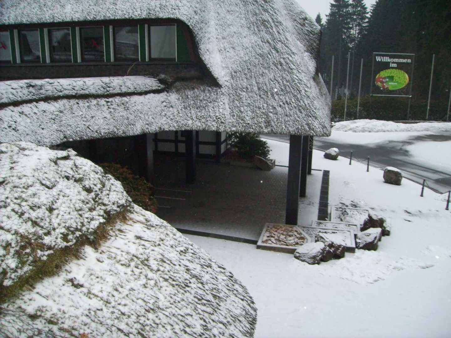 Blick vom Balkon auf den Parkeingang