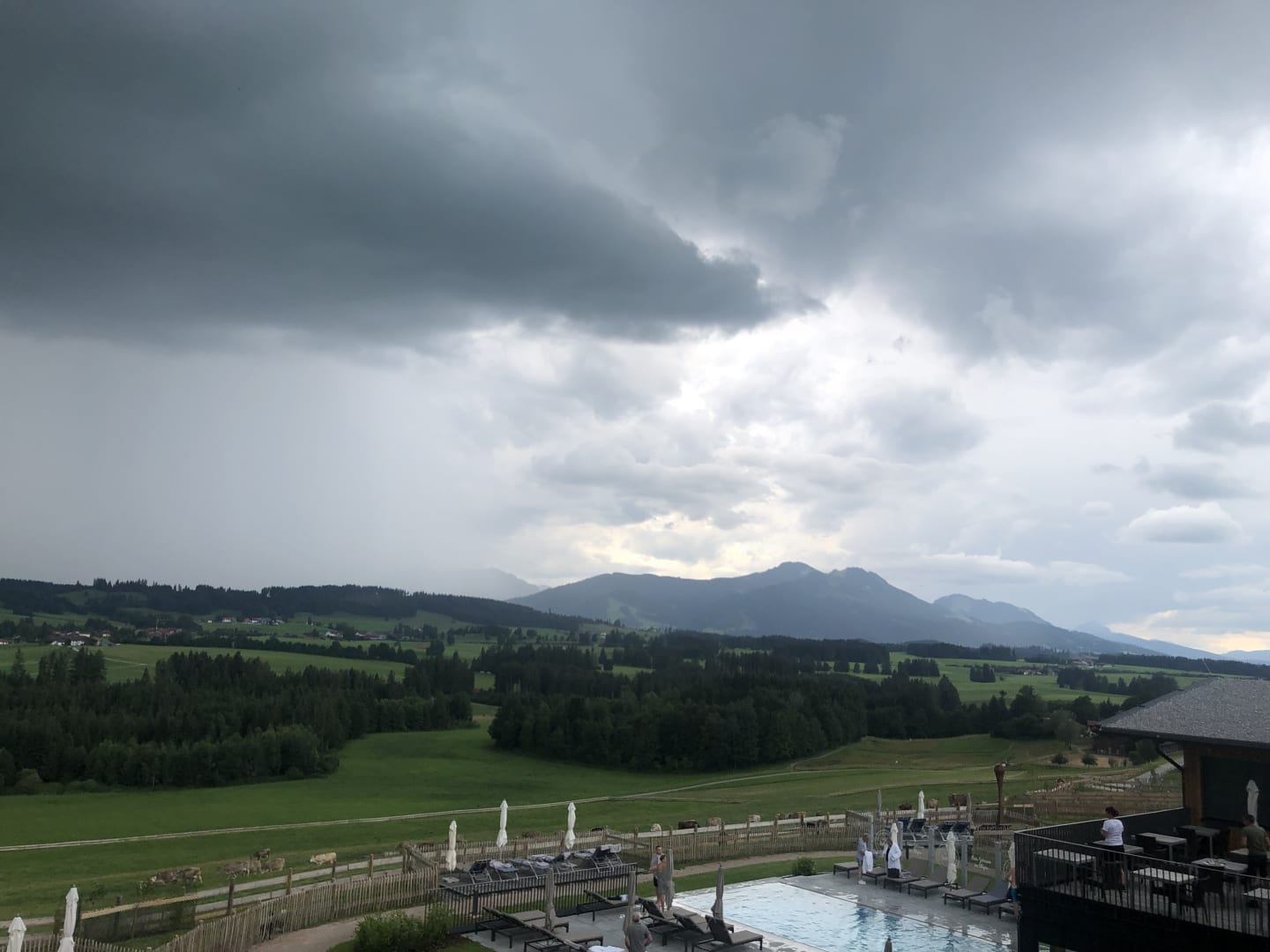 Blick von Balkon zum Poolbereich