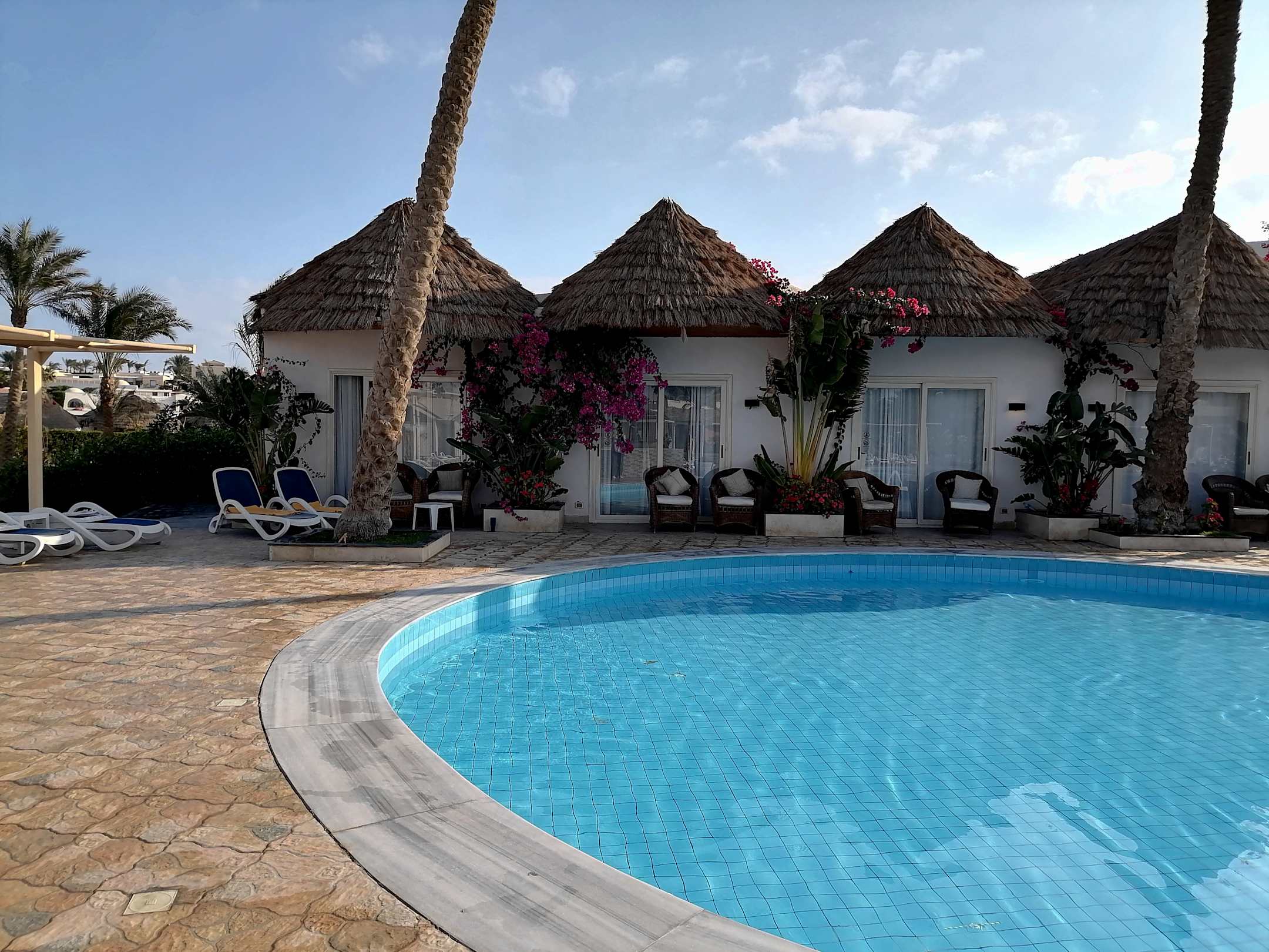 Unser Bungalow direkt am Pool einschließlich Bedienung mit Getränken.