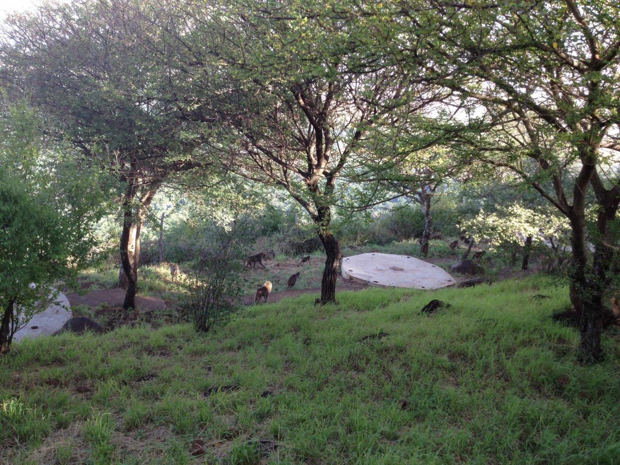 Проход бабуинов мимо палатки