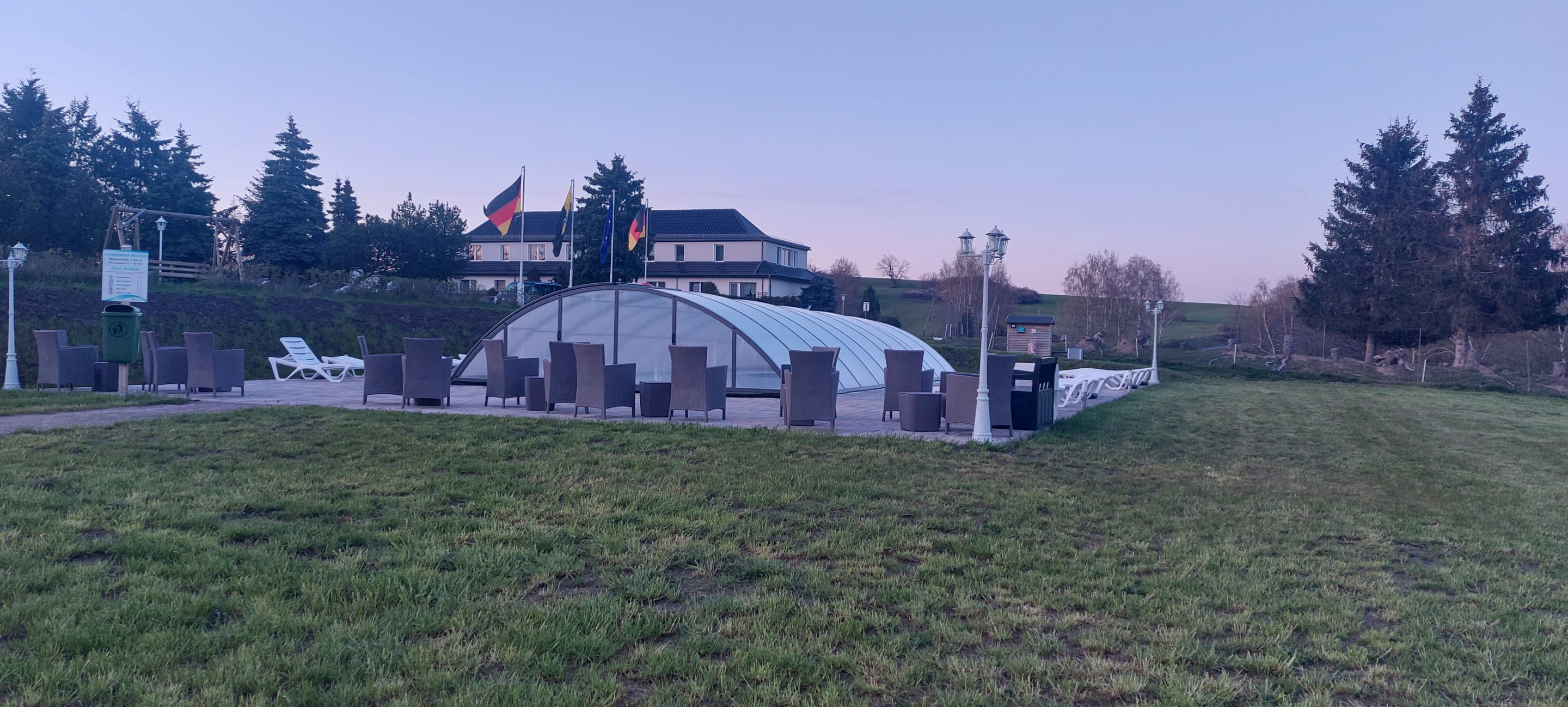 Poolbereich - bei dem Wetter (im April) noch überdacht.