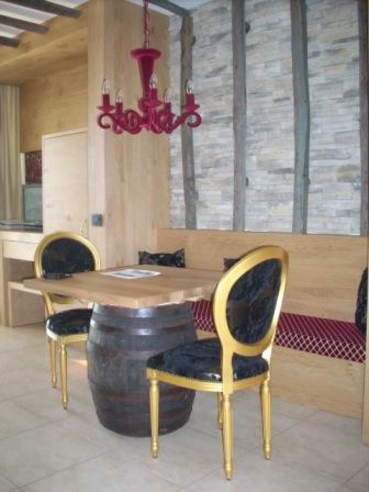 Originelle Sitzgelegenheiten in der Küche.