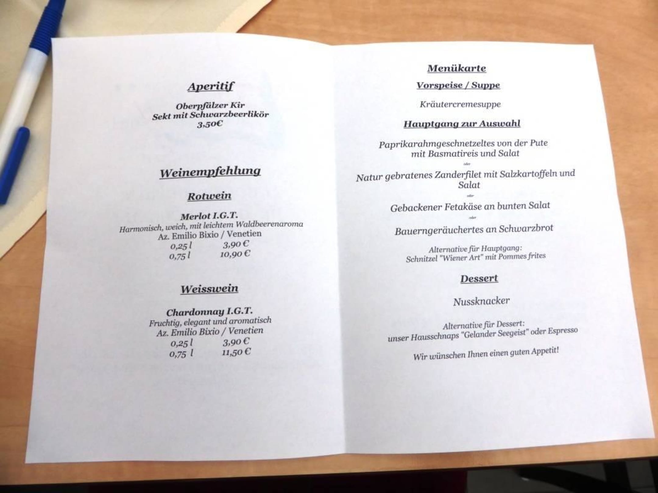 Menükarte HP