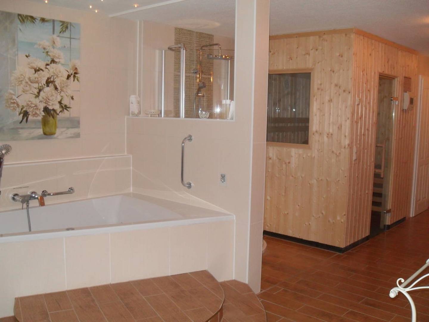 whirlpool, dusche und sauna im privatem wellnessbereich