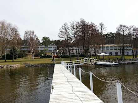Blick vom Steg auf das Hotel