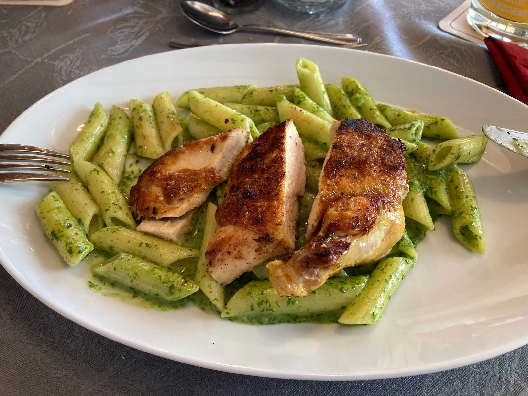 Maishähnchen mit Kräuterpasta