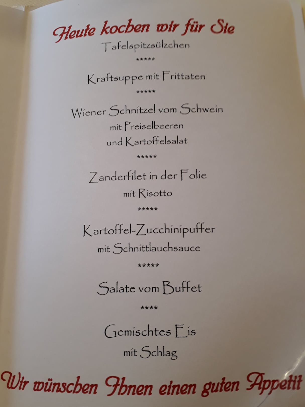 tägliche speisekarte