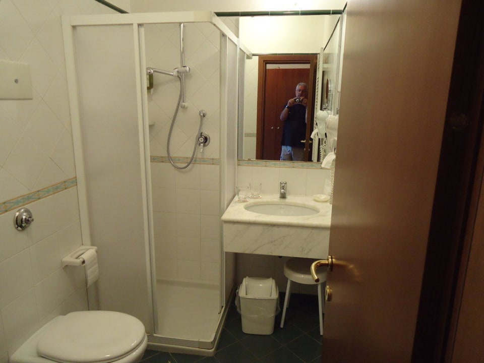 das bad ist zwar klein, doch jeden tag frische hand- u. badetücher