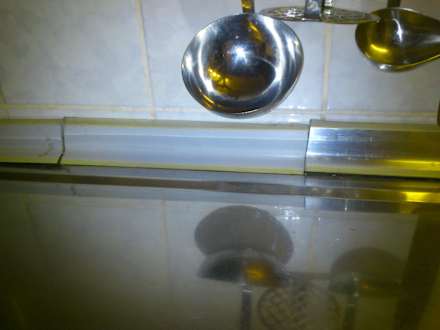mal aus Alu, mal aus Holz. Diese Arbeitsplattenleiste schließt an keiner Stelle mit der Arbeitsplatte. Überall Spalten, in denen sich der Dreck sammelt. Echt appetitlich wenn man dort kochen soll!