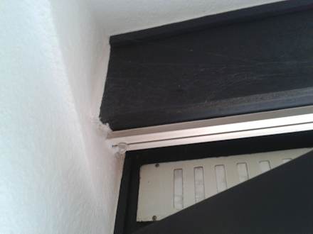 SpinnwebenSpinnweben, vielleicht schwer erkennbar, aber sie zogen sich über einen Meter hinweg. Angeblich wurde das Zimmer frisch gereinigt.