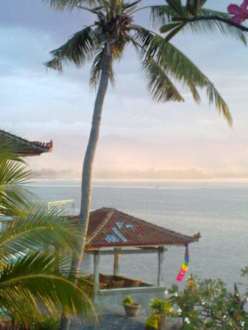 Überdachte Hütte auf Pantai Mas mit MeerblickTraditionelle balinesische "Hütte" - unser Lieblings-Frühstücksplatz