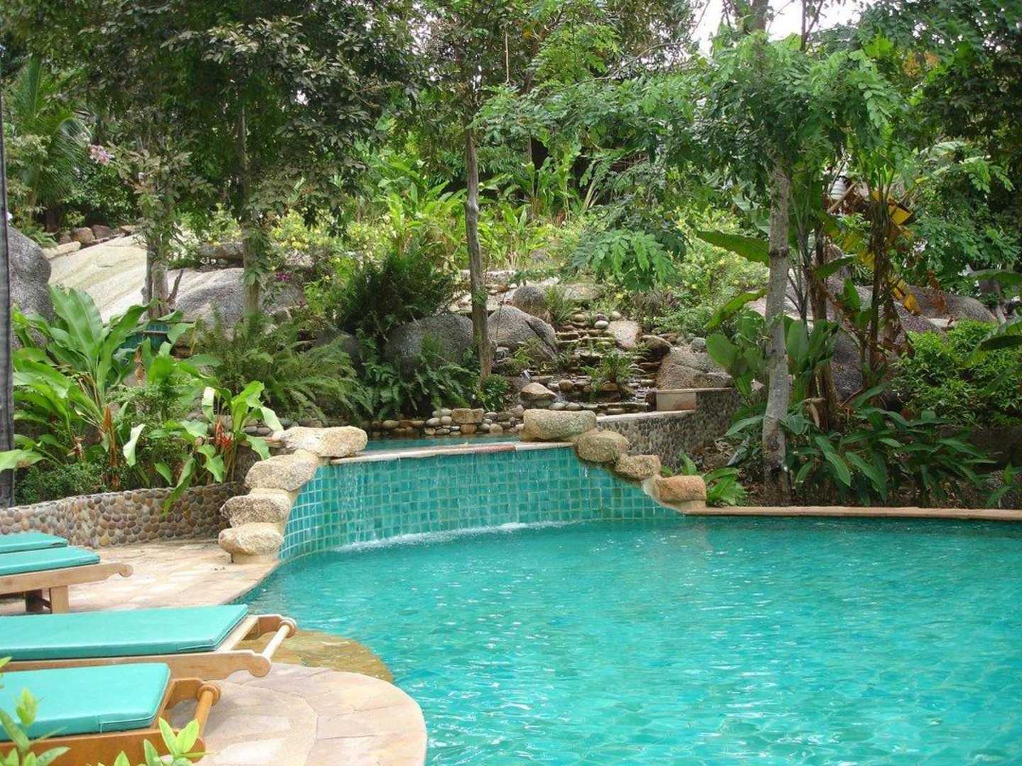 Pool mit integriertem Wasserfall