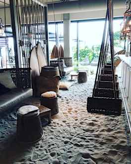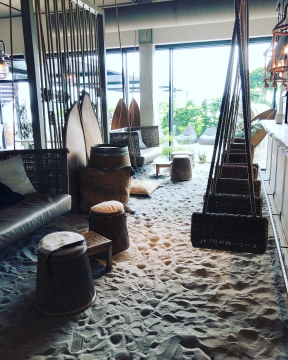 Bar mit Füßen im Sand
