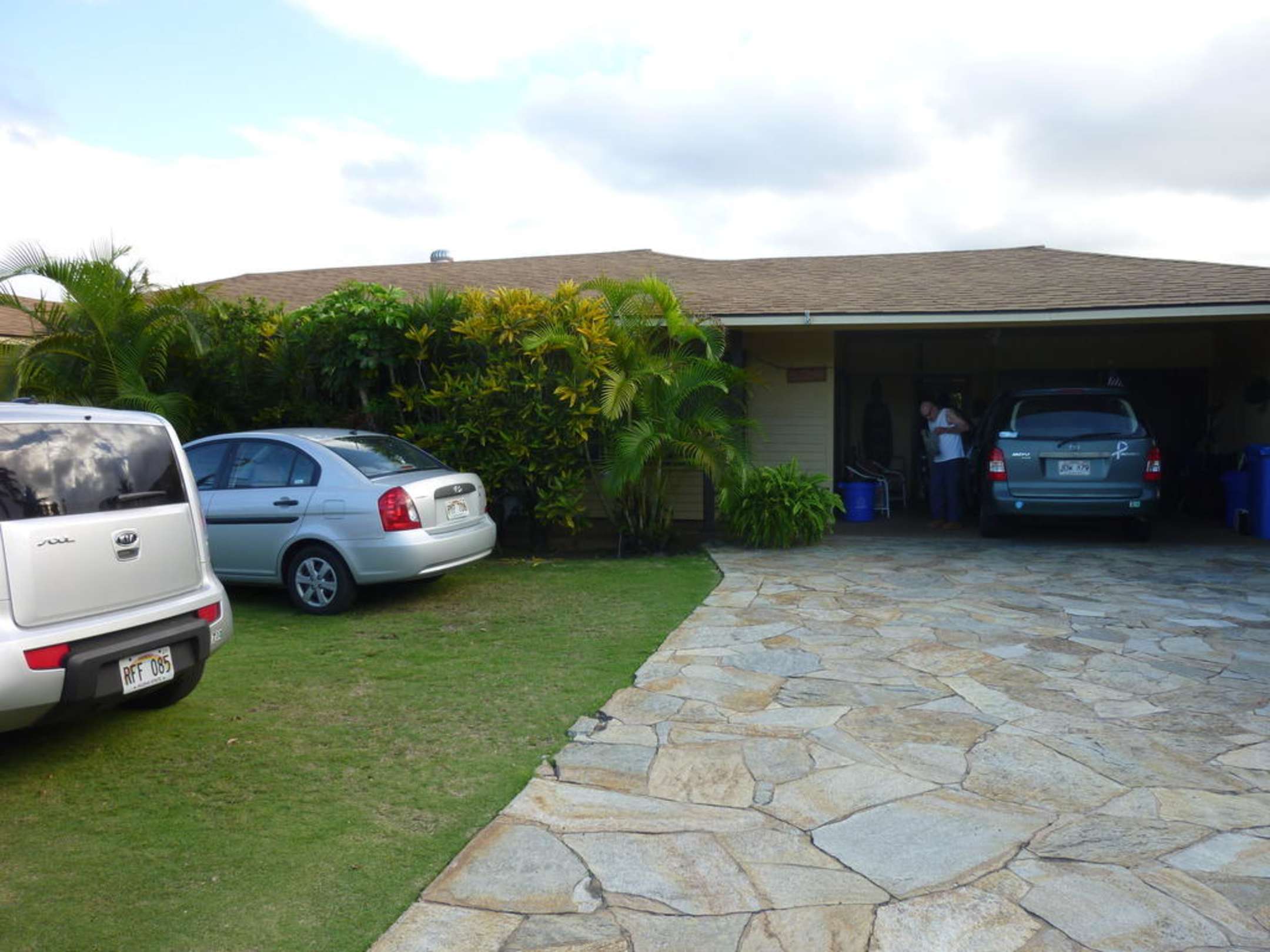 EinfahrtDas Wohnhaus ist ein langgestreckter Bungalow. Im Garten (angebaut) befinden sich dann die 2 Gästezimmer mit jeweils eigenem Bad