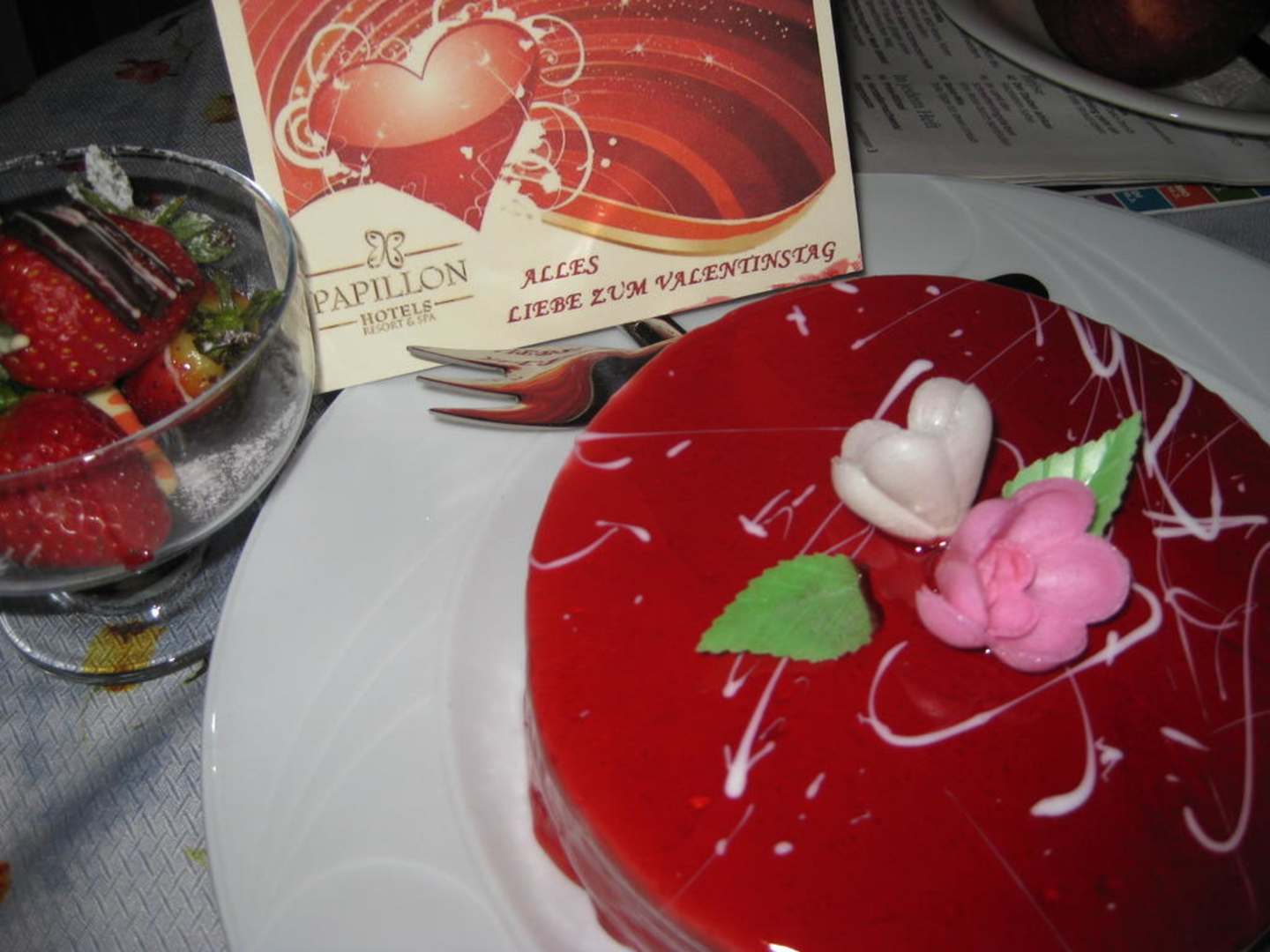 In jedem Zimmer gab es diesen Minikuchen zum Valentinstag mit Rose!