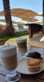Kaffee-Bar mit kleinen Kuchen und Muffins