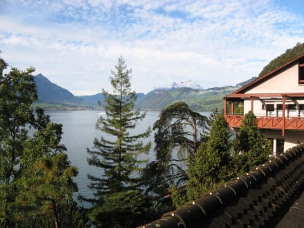 Blick vom Garten auf den See