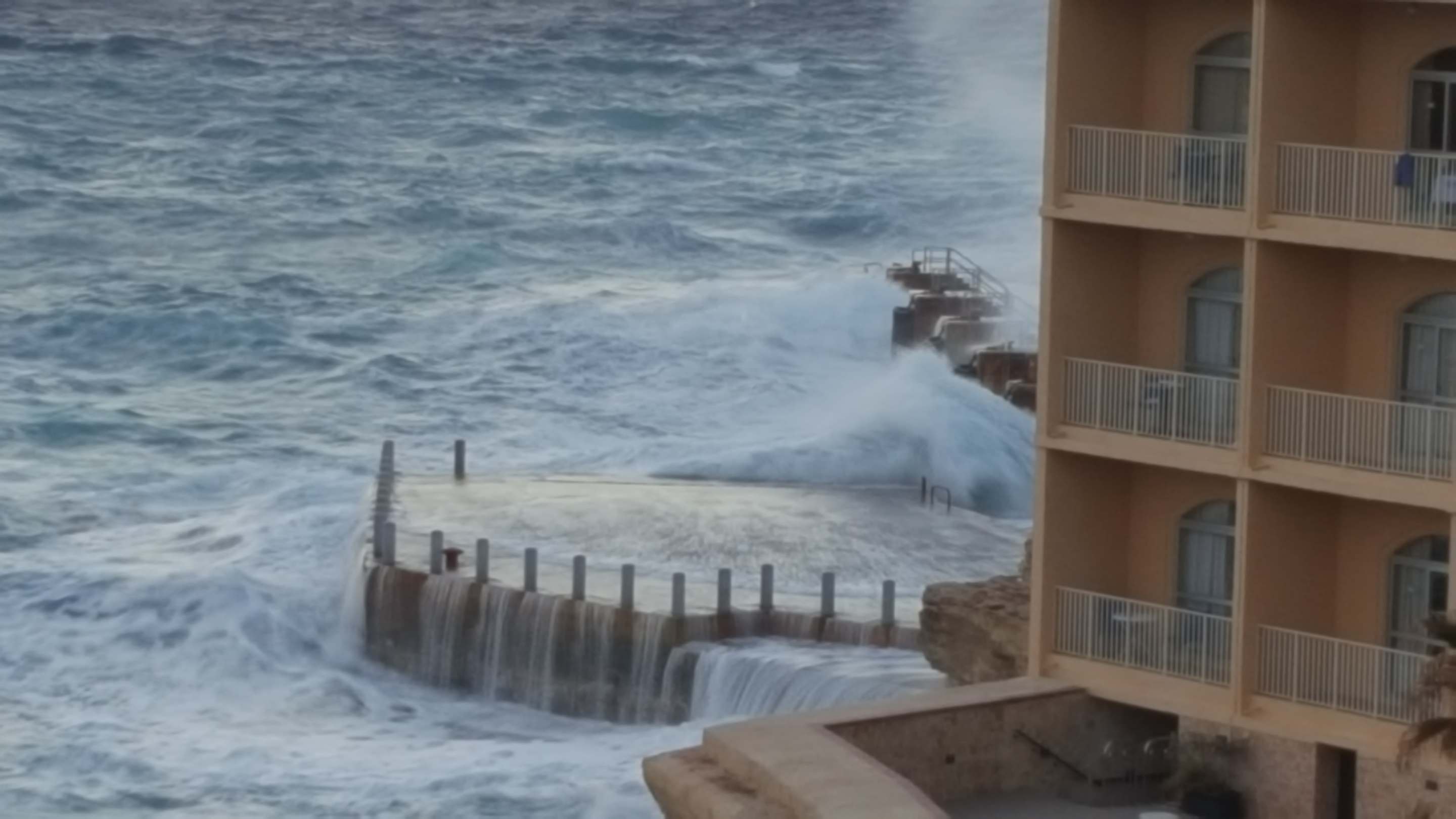 Blick vom Balkon auf das stürmische Meer
