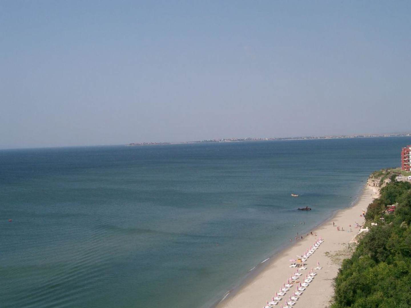 die Halbinsel Nessebar gegenüber, sehr empfehlenswert , steht unter Denkmalschutz, fährt 2x täglich ein Boot rüber, rechts der Sonnenstrand