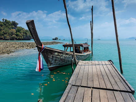 Hotel-Pier mit Longtail-Boot