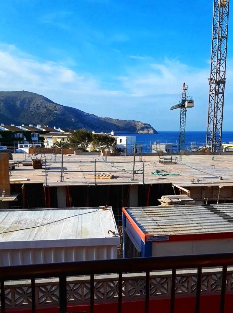 Blick vom Appartement Balkon auf die Baustelle.