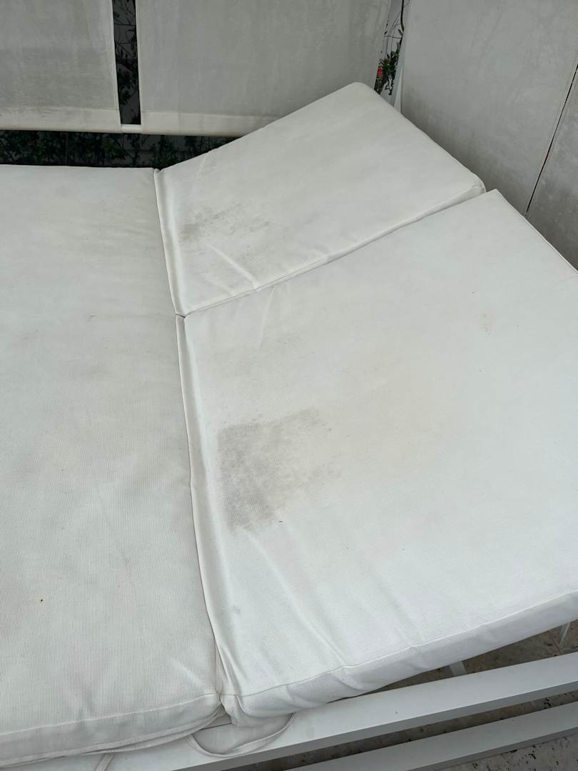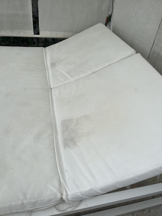 Private Doppelliegen auf der swim-up Terrasse ebenfalls voller Stockflecke