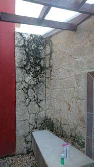 Schimmel an der Mauer der Aussendusche