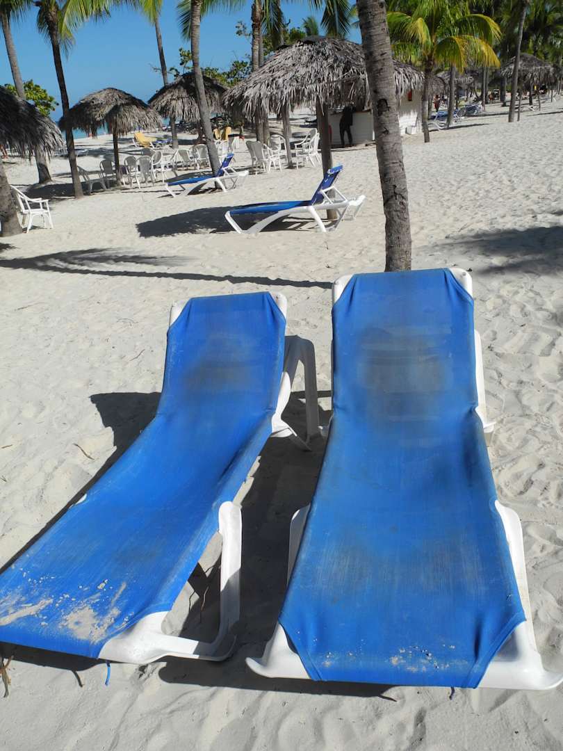 Verdreckte Liegen am Strand