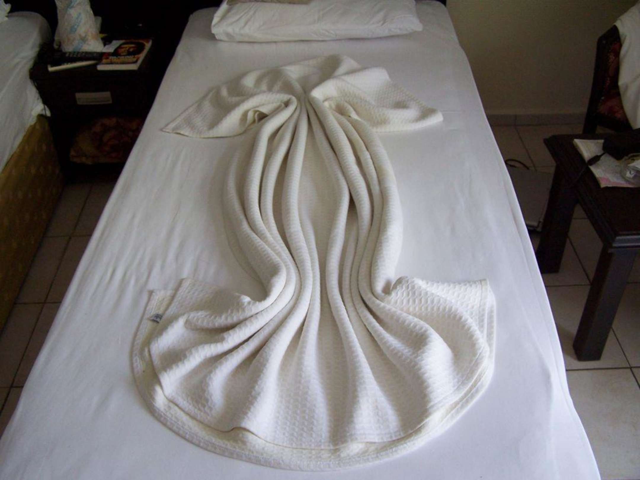 Kreative ReinigungskräfteNach jeder Zimmerreinigung wurde die Bettdecke hübsch hingelegt.