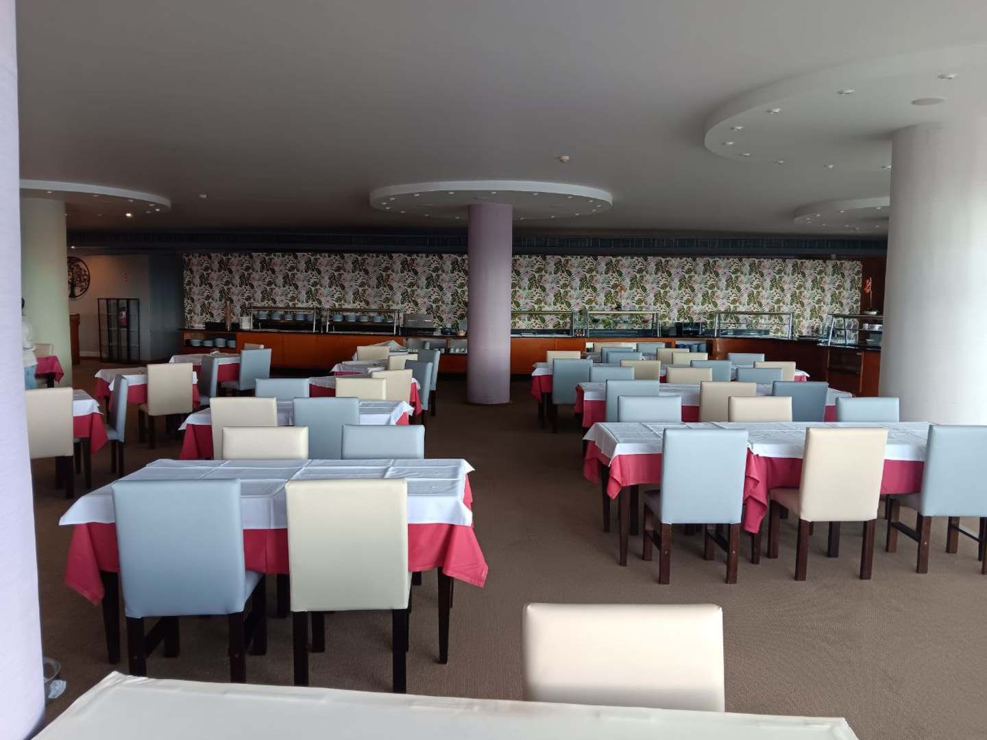 Neu eröffneter Speisesaal - eine halbe Stunde nach Wiederöffnung - nur noch ein Gast außer mir