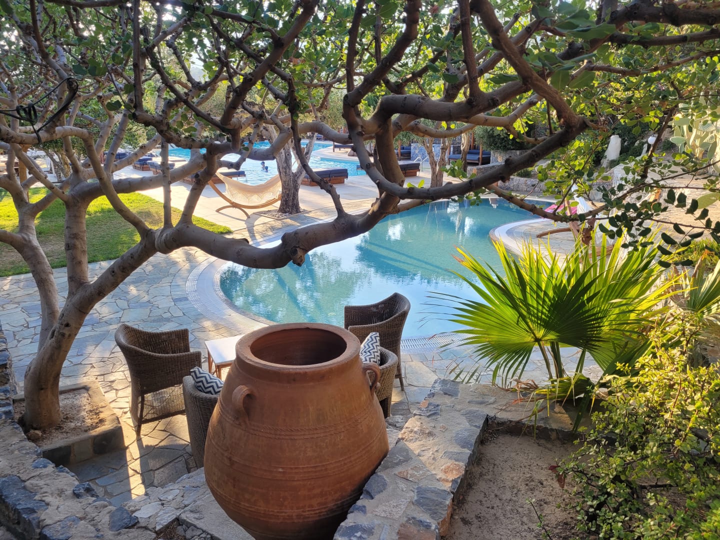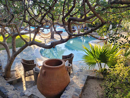 Blick auf die Poolanlage des Hotels