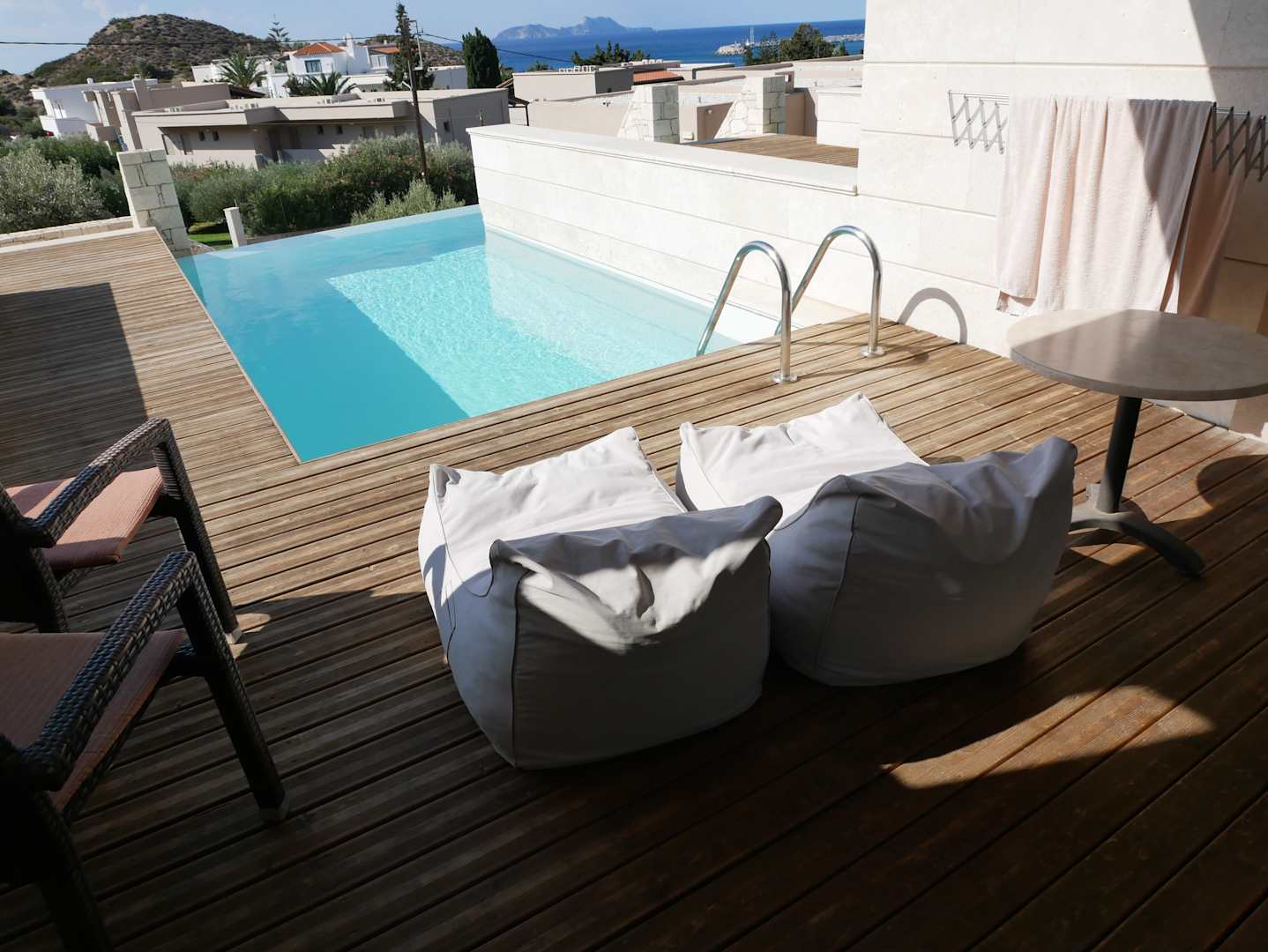 2 Liegesäcke, 2 Stühle und Tisch