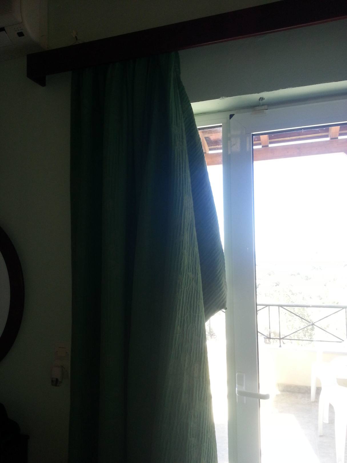 Gardine an der Balkontür, die hängt einfach so