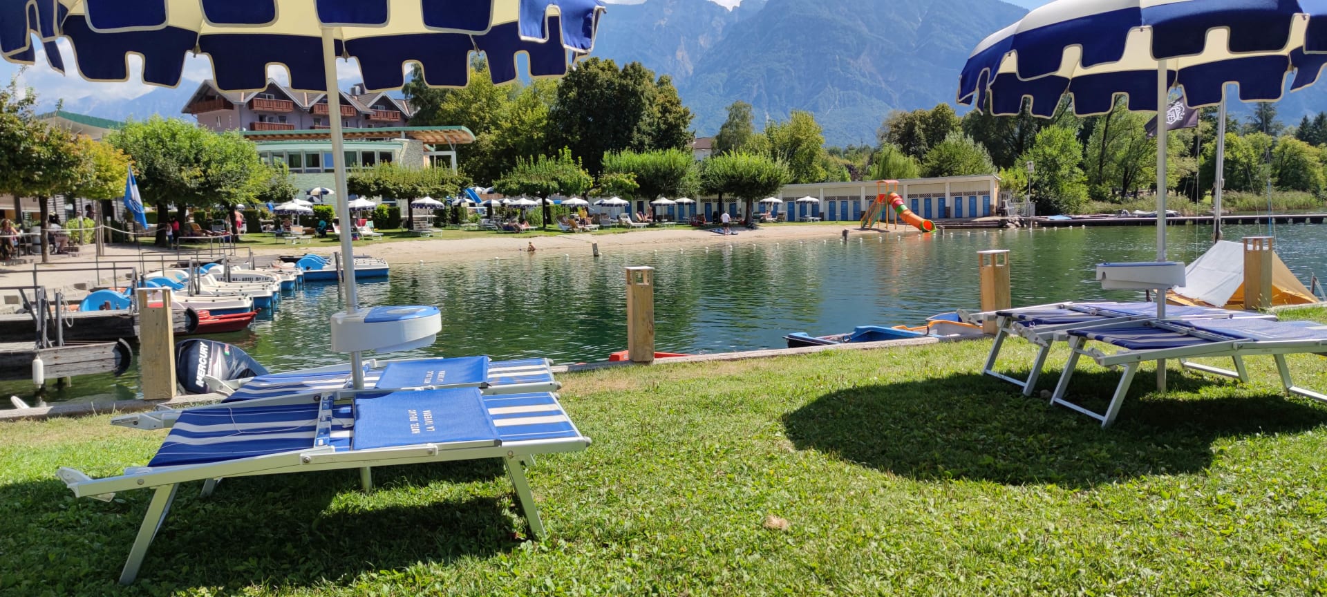Liegewiese mit Strand und Kinderrutsche