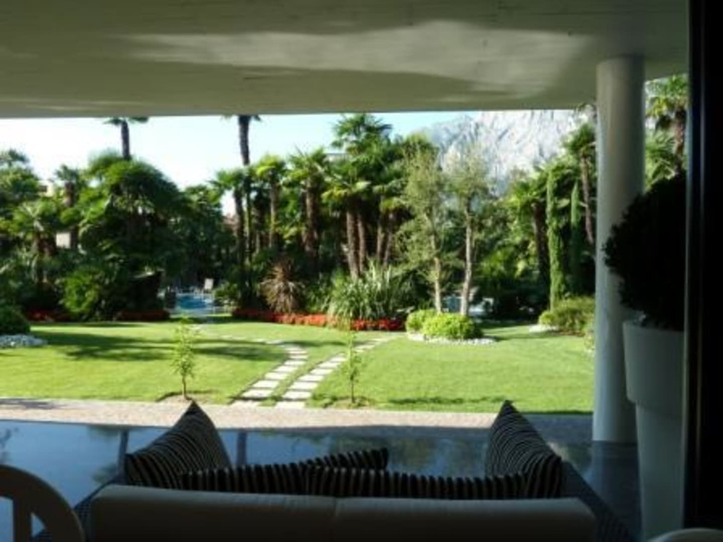 Blick in den schönen Garten und weg zum tollen Pool.