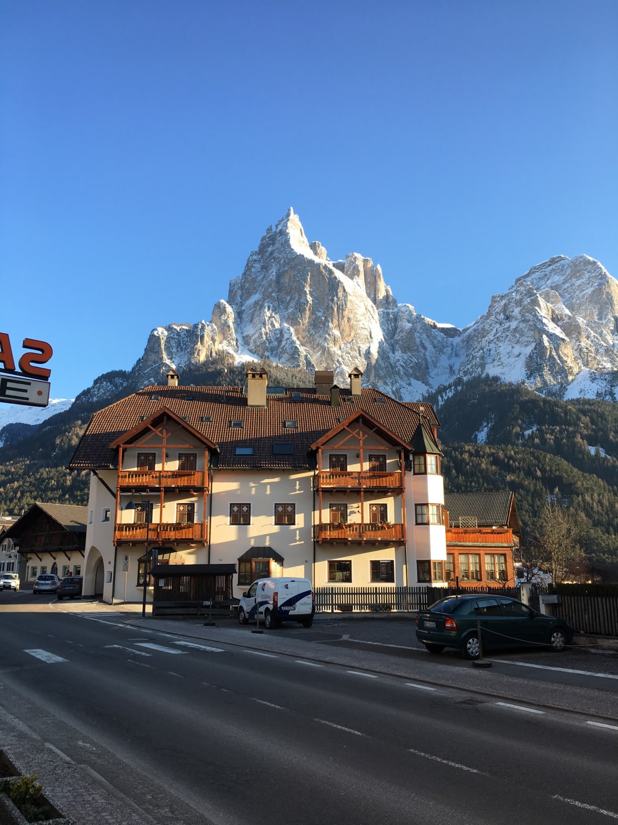 Blick vor dem Hotel auf den Schülern...