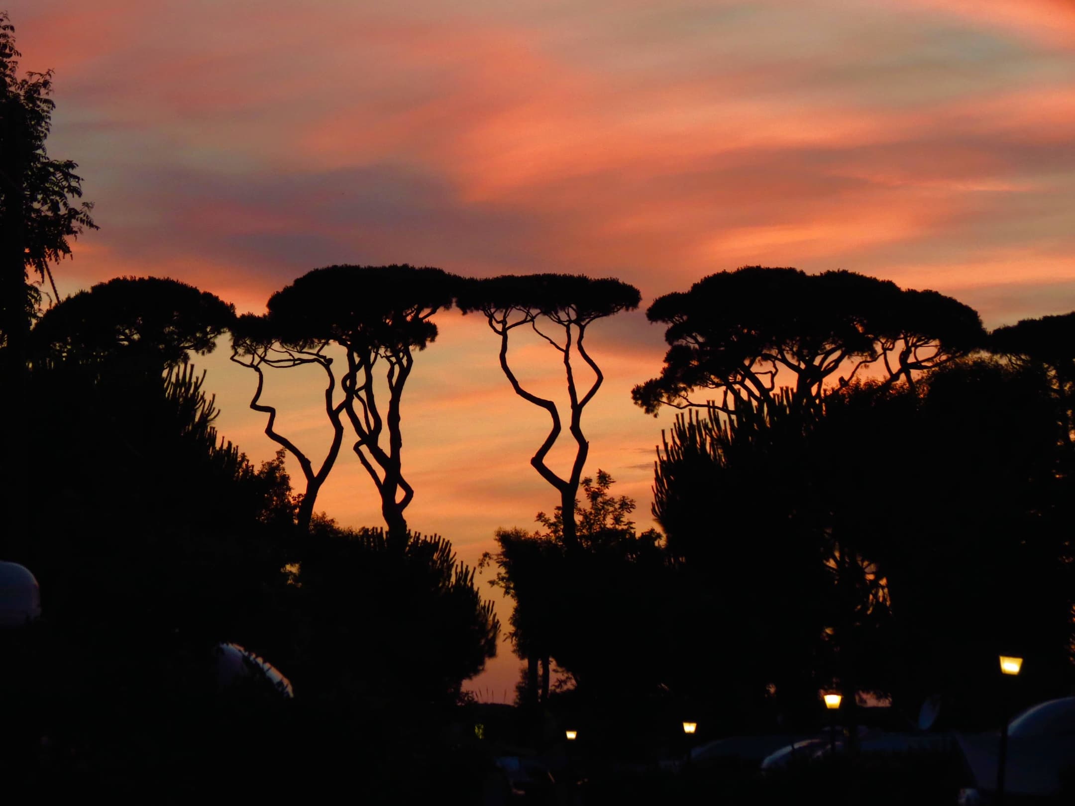 Abendstimmung unter den großen Pinien
