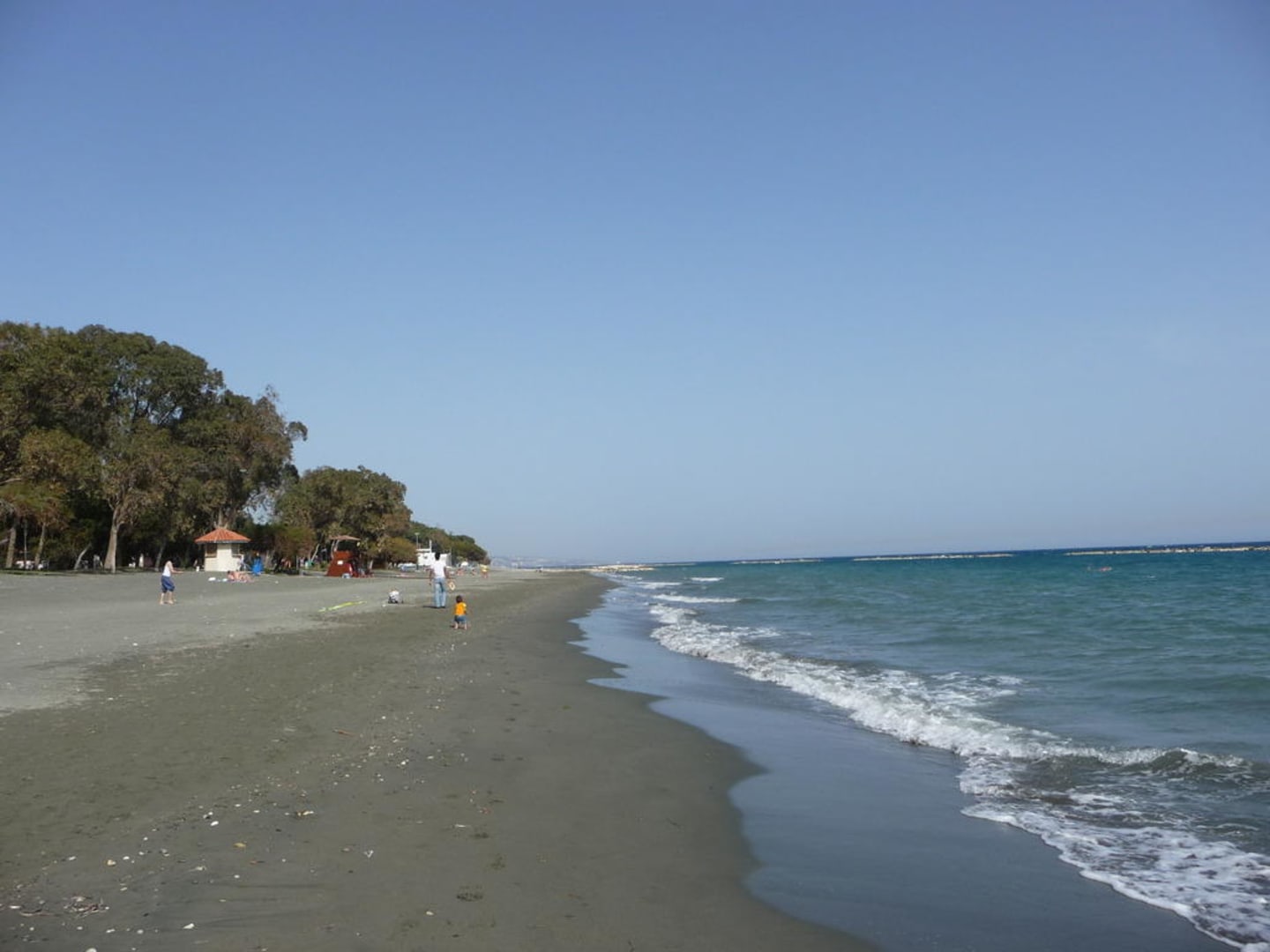 Dunkler Sandstrand am Hotel