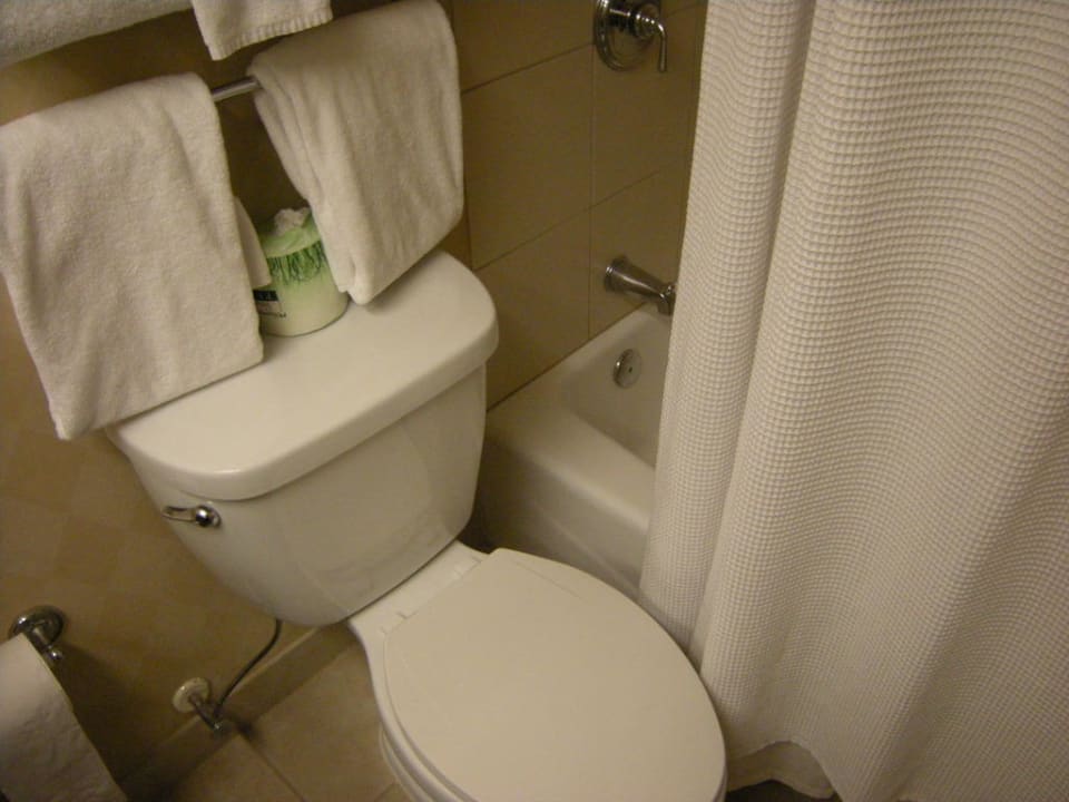 Toilette und und ein Teil der kleinen Badewanne.