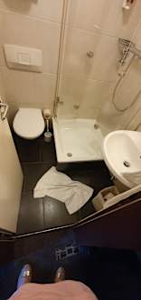 Badezimmer (Nasszelle) eines Standardzimmers mit der Kategorie 4 Sterne