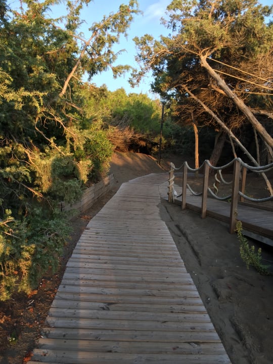 Der Weg vom Hotel zum Strand führt durch einen Pinienwald.