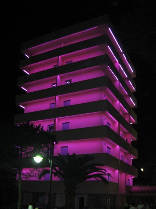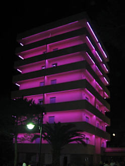 Rosa beleutetes Turmhotel
