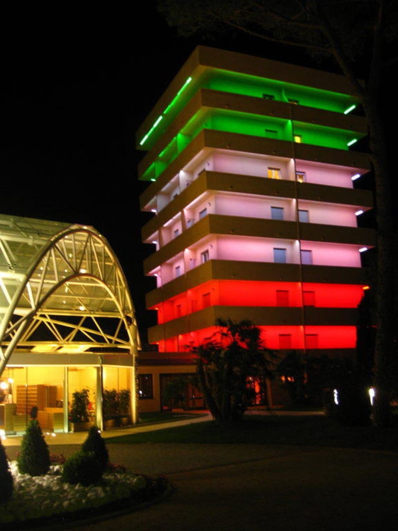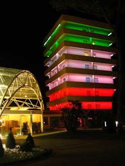 Schön beleuchtetes Turmhotel