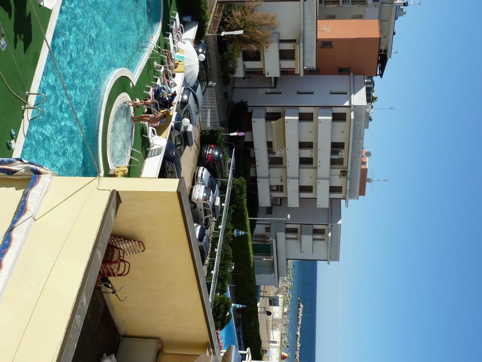 Blick auf den Pool und seitlichen Meerblick