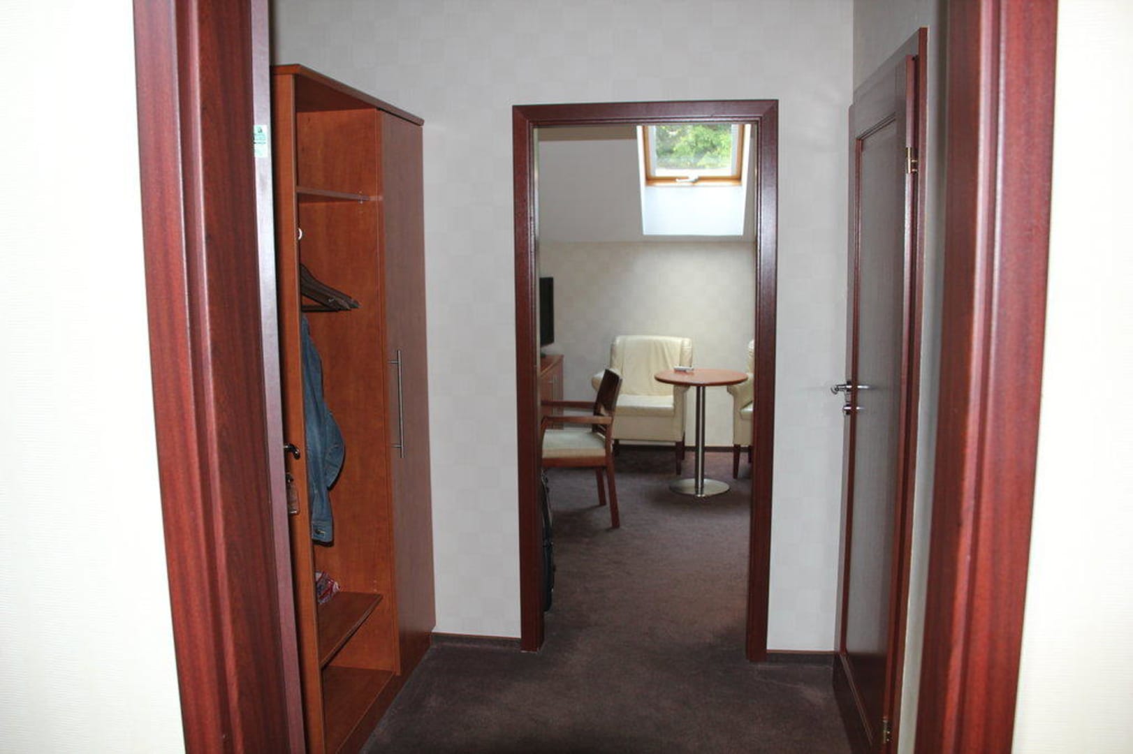 Kleiner Flur, Links: Kleiderschrank, Rechts: Badezimmer, Geradeaus: Wohn-und Schlafzimmer