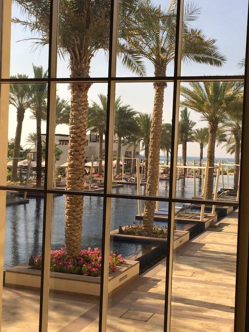 Blick aus Lobby zum Pool